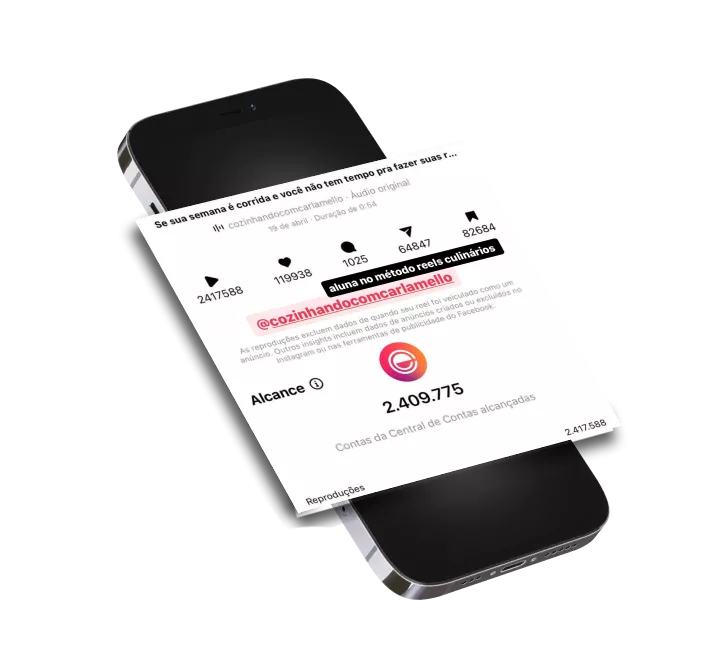 Já alcancei em um único vídeo mais de 10 milhões de views "orgânico" no Instagram com o método Reels Culinários.